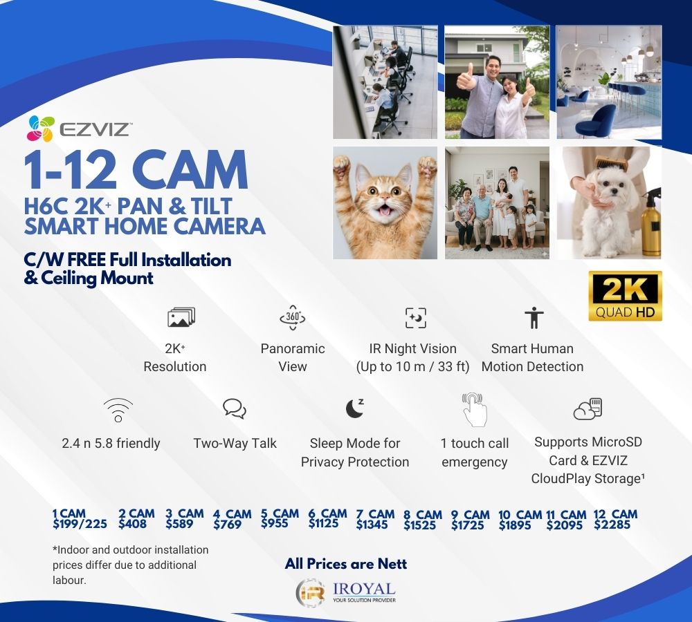 Protect your home or business today with the EZVIZ H6C PRO 2K 1 TO 12 CAM Pan Tilt Smart Color Night Vision Auto Smart Tracking WiFi Camera.